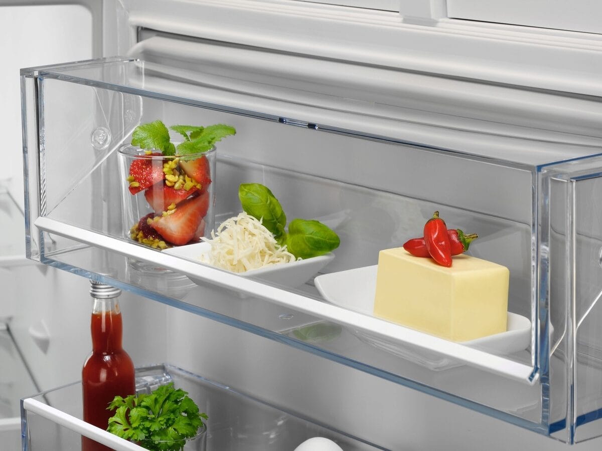 Thanks to AEG’s advanced TwinTech® No Frost technology, this fridge freezer uses a dual cooling system to keep the fridge at optimal humidity and the freezer completely frost-free. This not only prevents ice build-up but also keeps food fresher for longer by preserving moisture and flavour. The DynamicAir system further enhances food preservation by circulating a consistent flow of air throughout the fridge, ensuring even temperature distribution across every shelf and preventing hotspots that can cause food to spoil more quickly.