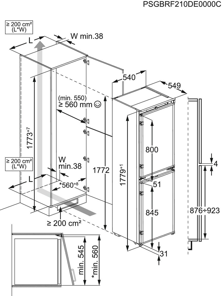 Built-in Dimensions (mm) (HxWxD)1780x560x560