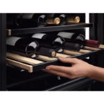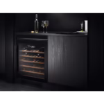 • Black with Glass Panel Finish AEG Wine Cooler – 145L Capacity, 52 Bottle Capacity, Single Zone, Touch Control Operation, Energy Rating G with a Noise Rating of Just 40dB(A).