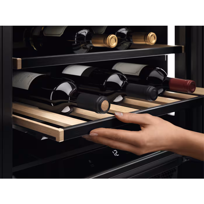 With an impressive 145-litre capacity, this AEG wine cooler can hold up to 52 bottles, providing ample space for a carefully curated selection of reds, whites, or rosés. Its single temperature zone allows you to maintain a consistent climate across the entire cabinet — perfect for preserving wines that benefit from the same controlled conditions. The electronic touch controls make it easy to set and adjust the temperature with precision, ensuring that every bottle is stored at the optimal serving or ageing temperature.