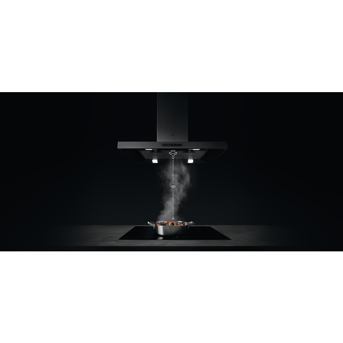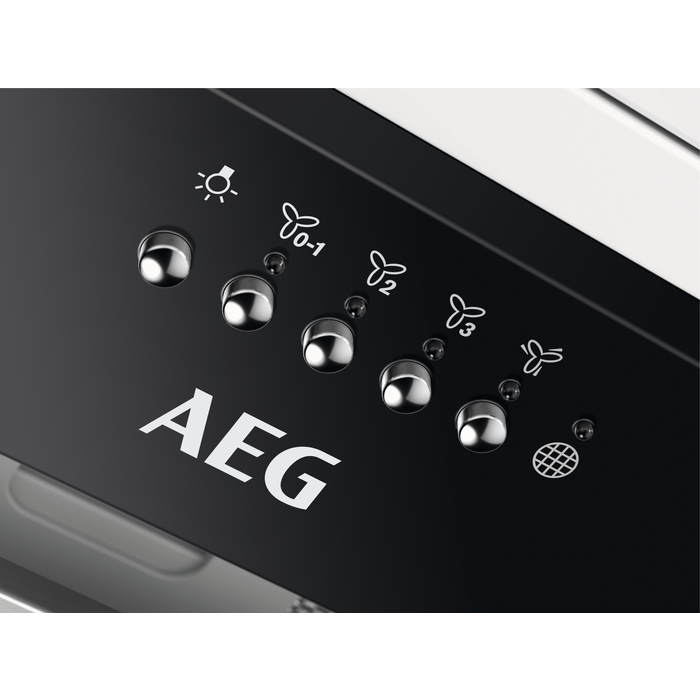 Discover the AEG DGE5661HB 54cm Built In Extractor Hood in Matt Black on KDH Electrical. Matt Black Finish AEG Ceiling Hood – 3+1 Intensive Speeds, Washable Filter, LED Lighting, Max 430m3/h / Min 295m3/h Capacity, Energy Rating A with a Noise Rating of Just 54dB(A). Hob2Hood – Switch on your cooker hood and lights as you start cooking on your hob.