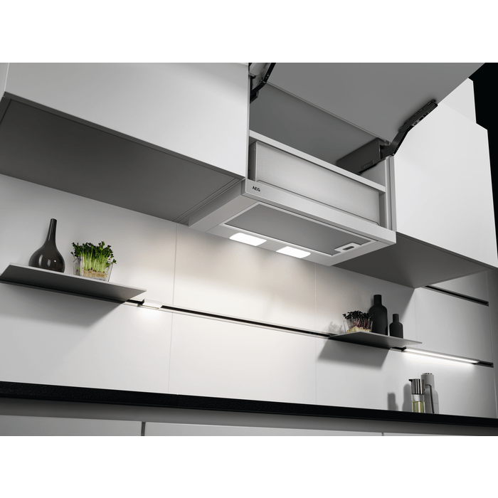 Discover the AEG DPB3632S 90cm Telescopic Pull-Out Extractor Hood in Stainless Steel on KDH Electrical. Stainless Steel Finish AEG Extractor Hood – 3 Speeds, Washable Filter, LED Lighting, Max 410m3/h / Min 170m3/h Capacity, Energy Rating C with a Noise Rating of Just 48dB(A). Removable Filter – Can be washed in the Dishwasher.