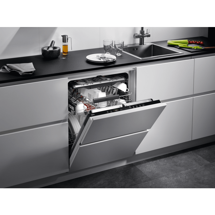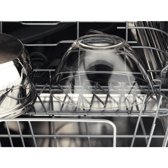 Designed with precision, this dishwasher features AEG’s advanced SprayZone technology, an intensive cleaning zone that tackles even the most stubborn, burnt-on food, delivering up to three times better performance than standard programmes. SatelliteClean ensures every corner of every dish is reached, thanks to a unique rotating spray arm that provides thorough, even coverage without using extra water.