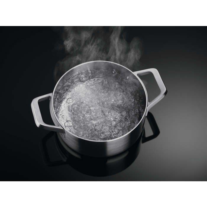 The Hob2Hood® function connects the hob and the hood. The cooker hood automatically adjusts the fan speed based on the heat, without lifting a finger. For powerful extraction when searing. And quieter extraction when simmering.