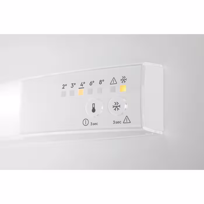 For precise cooling control, the internal electronic control feature provides full command over the storage conditions of your food. LED indicators clearly display the temperature settings, allowing for convenient adjustments and control to ensure optimal preservation of your groceries.