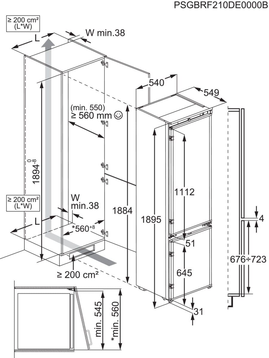 | Built-in Dimensions (mm) (HxWxD) | 1894x560x550 |