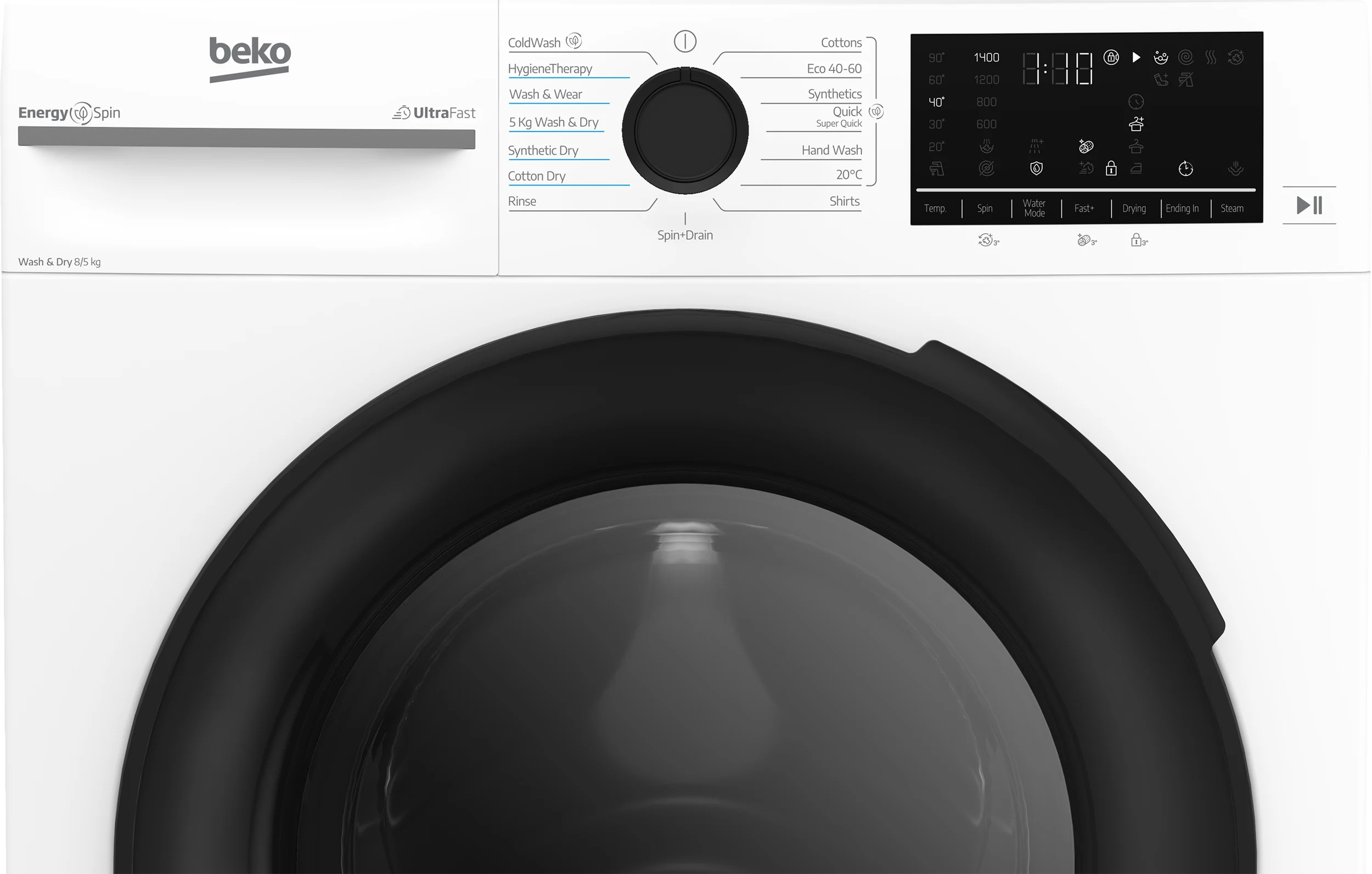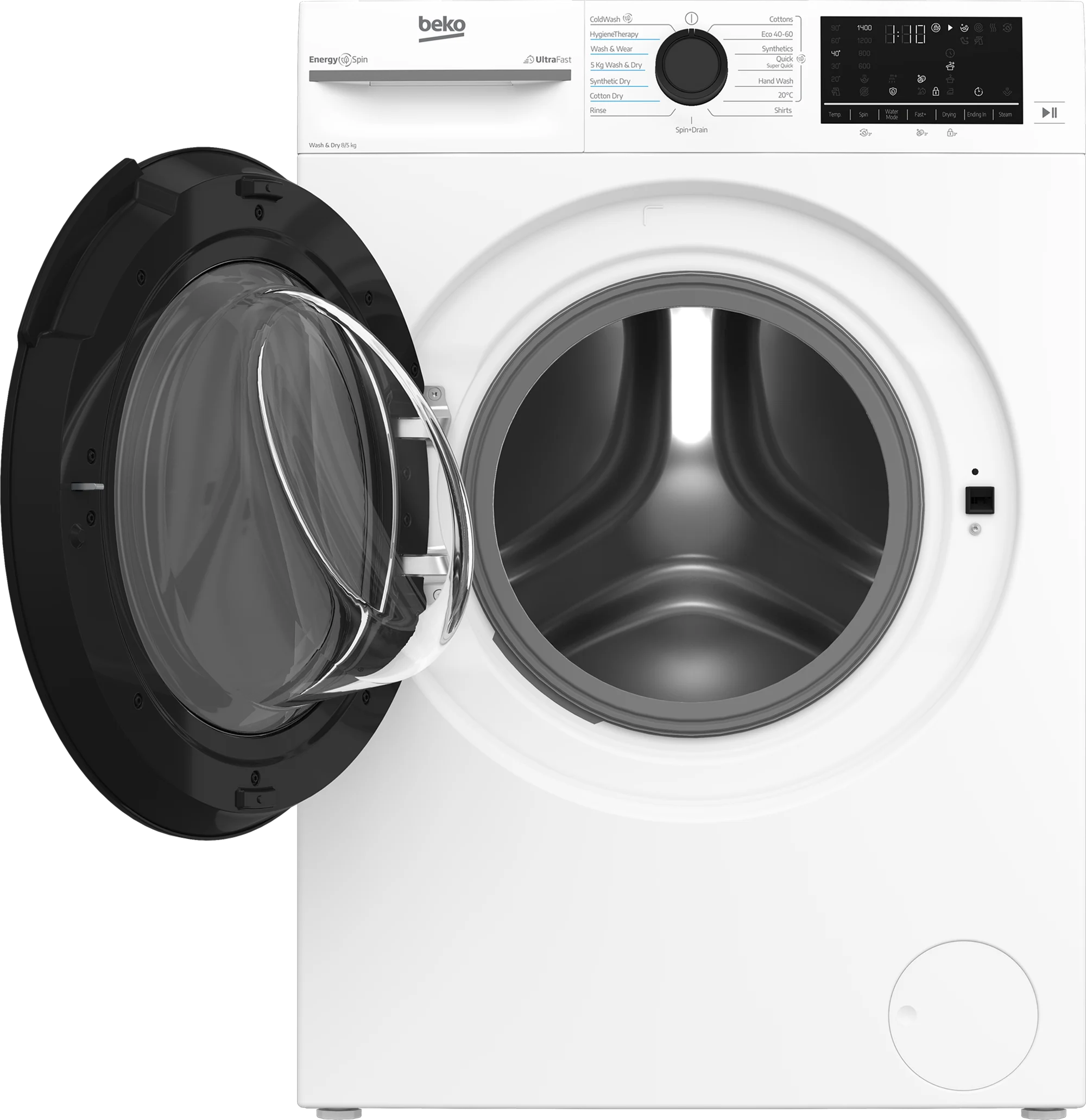 Thanks to Beko’s innovative EnergySpin technology, you can reduce energy usage by up to 35% on everyday wash cycles, without sacrificing cleaning performance. For days when speed is key, UltraFast technology lets you wash and dry 5kg of laundry in under three hours, while the Quick Programme refreshes 8kg loads in just 28 minutes. And with IronFast technology, your clothes come out with up to 50% fewer creases, cutting down your ironing time significantly.