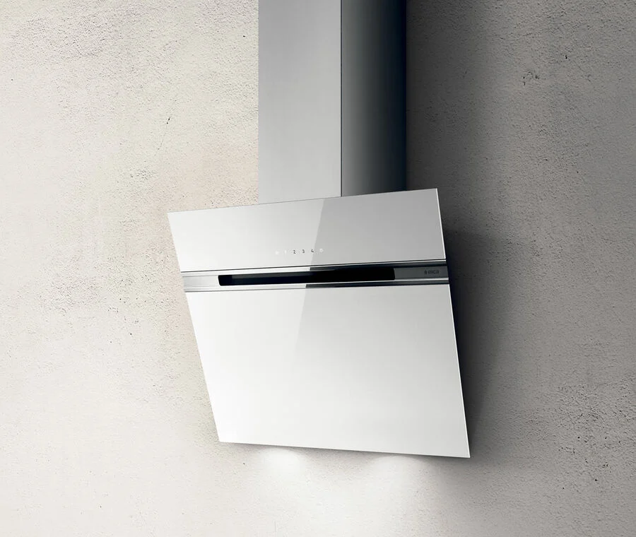 • White Glass Finish Elica Angled Extractor – 3+1 Intensive Speeds, Touch Control Operation, Washable Filter, LED Lighting, Max 755m3/h Capacity, Energy Rating B with a Noise Rating of Just 65B(A).