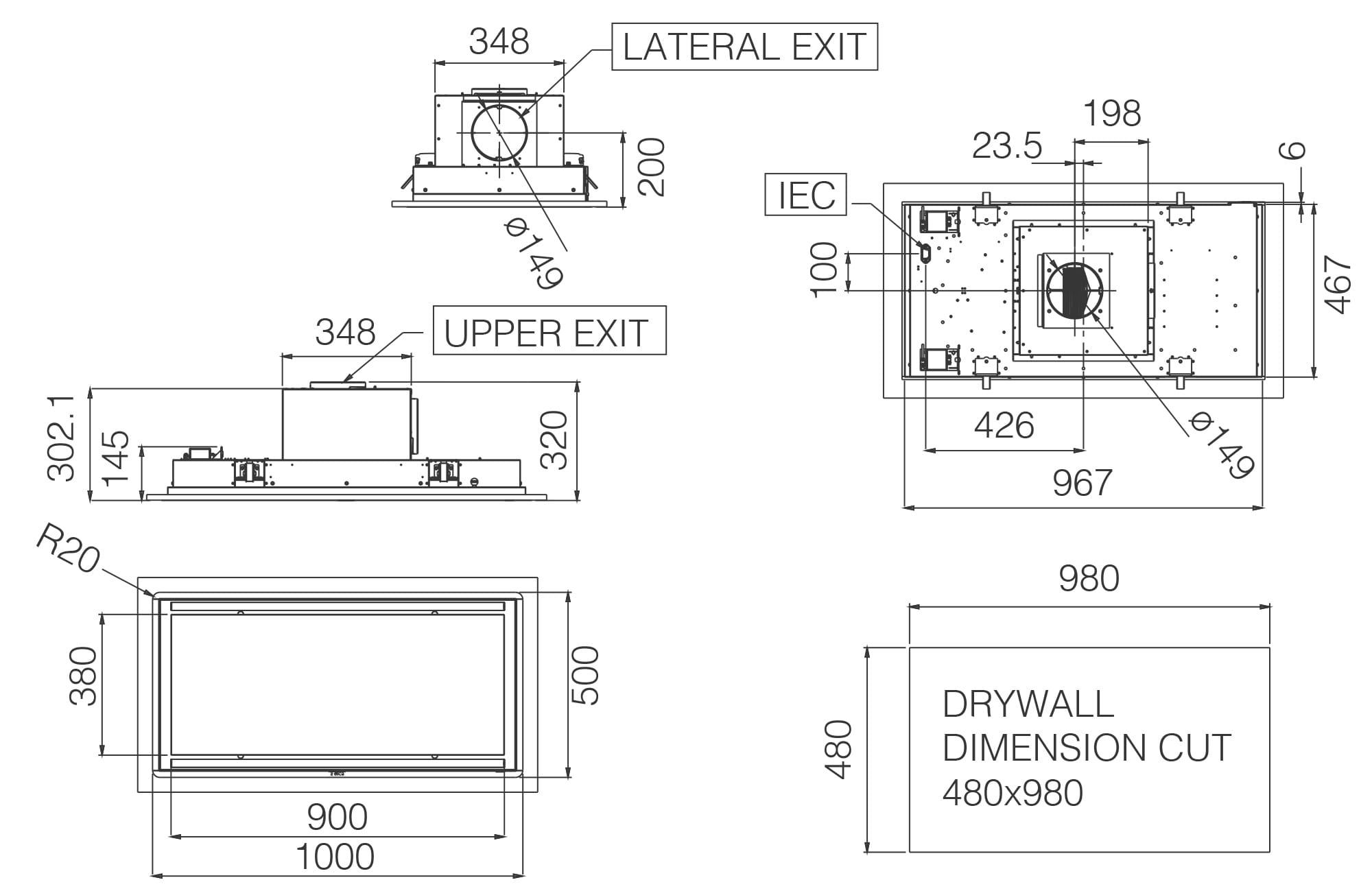 Aluminium grease filter Included. Remote control Included. S.E.I System Space salver installation.