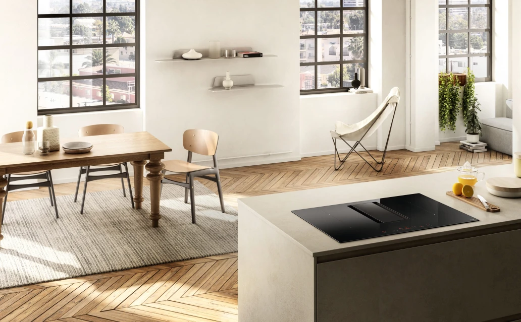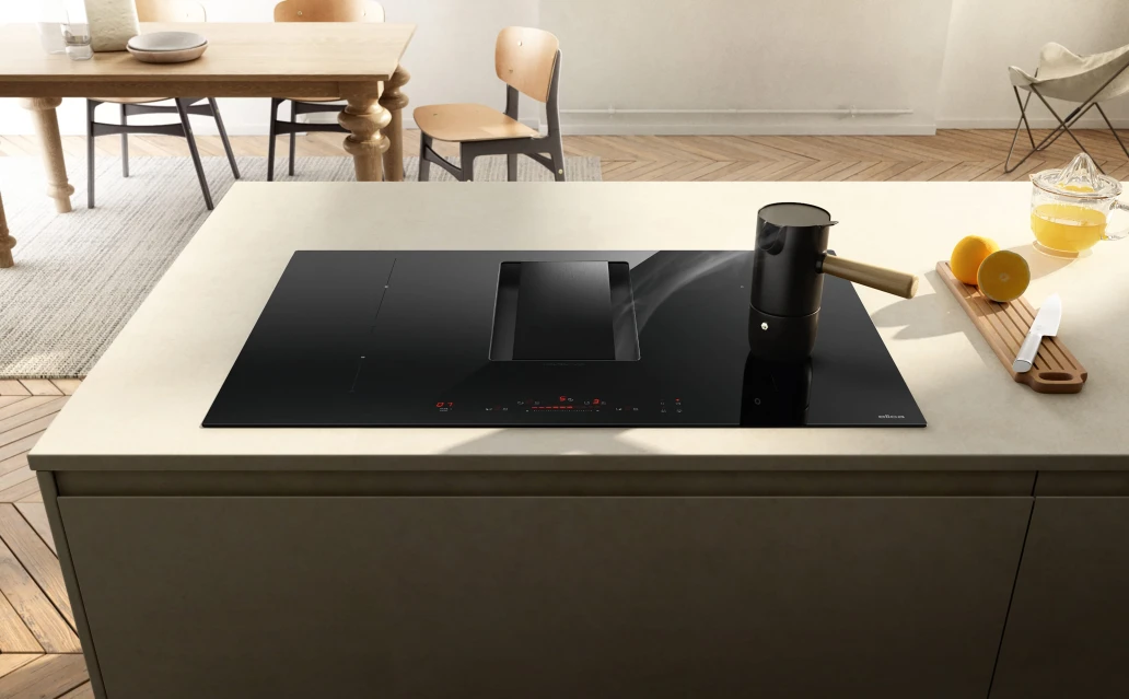 The NikolaTesla Alpha is much more than an induction hob — it’s a complete cooking and extraction solution. This groundbreaking design integrates high-performance induction cooking with a central extraction system, ensuring that steam, smoke and odours are eliminated right at the source. Thanks to Elica’s innovative Autocapture function, the hob automatically adjusts its extraction power based on which cooking zones are in use, optimising performance and saving energy. With Comfort Silence technology, even at maximum power, the system remains remarkably quiet, allowing you to cook and converse comfortably in open-plan spaces.