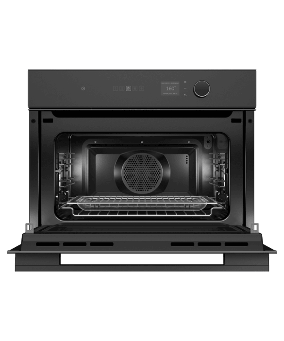 Discover the Fisher & Paykel OM60NMLB1 Built In Microwave Combi Oven in Black at KDH Electrical. Black Glass Finish Fisher & Paykel Microwave Oven – 49L Capacity, 900W, 19 Functions inc. Fan Forced, Air Fry and Rapid Proof, Rotary Dial & Touch Control Operation, Timer. 19 Functions – 49L Capacity with functions such as Fan Forced, Air Fry and Rapid Proof. ActiveVent™ – Retains and releases moisture from the oven at the right time to create dishes that are succulent and juicy, while cooked to perfection on the outside. SmartHQ™ App – Wi-Fi enabled and works with the app as a remote control and notifications.