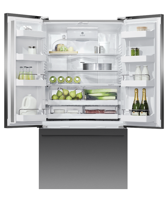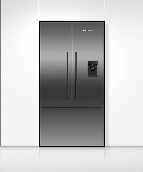 Discover the Fisher & Paykel RF540ADUB7 Freestanding French Door Fridge Freezer in Black Stainless Steel at KDH Electrical. Black Stainless Steel Finish Fisher & Paykel Fridge Freezer – 569L Capacity, LED Lighting, Frost Free, Water + Ice Dispenser (Plumbing Required), Energy Rating E with a Noise Rating of Just 42dB(A). ActiveSmartâ„¢ – Helps keep food fresher for longer by constantly maintaining the ideal temperature. Convenient – Access fresh, chilled water & ice with slimline water dispenser & internal ice maker. Spacious – Bottom freezer with full extension drawer gives easy access to frozen goods.