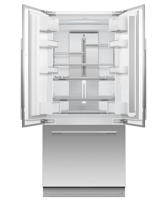 Discover the Fisher & Paykel RS80A3 Built In French Door 90cm Fridge Freezer in Custom Finish at KDH Electrical. Custom Finish Fisher & Paykel Fridge Freezer – 417L Capacity, LED Lighting, Touch Control Operation, Frost Free, Sabbath Mode, Energy Rating E. Spacious – Large bottom freezer featuring a full-extension drawer. ActiveSmart™ – Helps keep food fresher for longer by constantly maintaining the ideal temperature.