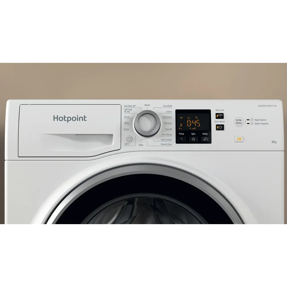 All in all, the Hotpoint NSWE846WSUK 8kg 1400 Spin Washing Machine offers a reliable, energy-efficient solution packed with features that simplify everyday laundry. With its stylish design and comprehensive functionality, it’s a smart addition to any modern home.