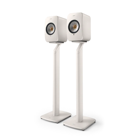 Discover the KEF S1 Floor Stand for LSX in Mineral White on KDH Electrical. The S1 Floor Stand is designed to partner the LSX II Wireless HiFi system. S1 boasts a cable management system that hides any wires, while the integrated mounting system rigidly bonds LSX II and the stand together.