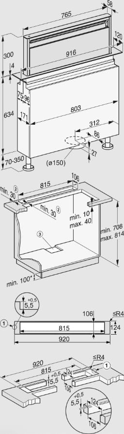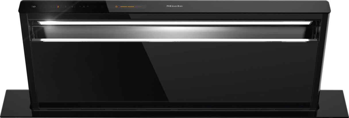 Discover the Miele DAD4841 92cm Downdraft Extractor in Obsidian Black on KDH Electrical. Obsidian Black Finish Miele Downdraft Extractor – Duct Out or Recirculation (sold separately), Touch Control Operation, Long-life Filter, Run-On function, Filter Indicator & Noise Rating of just 76dB(A) with Energy Rating A. Stainless Steel (10-ply) Grease Filter – Can be cleaned in Dishwasher. Powerful – 640 m3/h on booster setting. Energy Efficient – LED Lighting. Miele CleanCover – Easy cleaning & Protects electrical components + motor. Miele@Home – Make your life smart; connect up all your Miele appliances using your smart devices.
