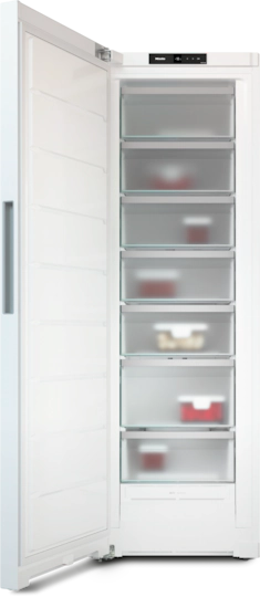 Discover the Miele FNS4382D Freestanding Freezer in White on KDH Electrical. White Finish Miele Freezer – 278L Capacity, Frost Free, Reversible Hinge, Matches KS4383 for Side-by-Side Installation (joining strip included with freezer) Door hinged Right, 8 Drawers inc. XXL Box, Touch Control Operation, SuperFreeze, Party & Sabbath Modes, Energy Rating D with a Noise Rating of Just 36dB(A). SensorTouch – Flush Touch panel control. NoFrost – Maximum convenience for freezing food & saves the hassle of defrosting forever. XXL Box – Expansive extra large storage compartment provides ample space for larger items ensuring organised & efficient freezing. SuperFreeze – Rapidly lowers the temperature freezing fresh items quickly, which helps preserve food quality & prevent temperature fluctuations. LED Lighting – Energy efficient & perfectly illuminated. Miele@Home – Make your life smart; connect up all your Miele appliances using your smart devices.