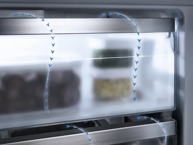 At the heart of the fridge is Miele’s PerfectFresh Pro system, which creates optimal storage conditions for fresh food by maintaining temperatures between 0°C and 3°C with precisely controlled humidity. Meat, fish and dairy stay fresh and full of flavour for significantly longer, while fruit and vegetables retain their crispness, vitamins and nutrients for up to five times longer. This is supported by DynaCool technology, which circulates cool air evenly throughout the fridge to eliminate temperature differences and ensure consistent cooling on every shelf.