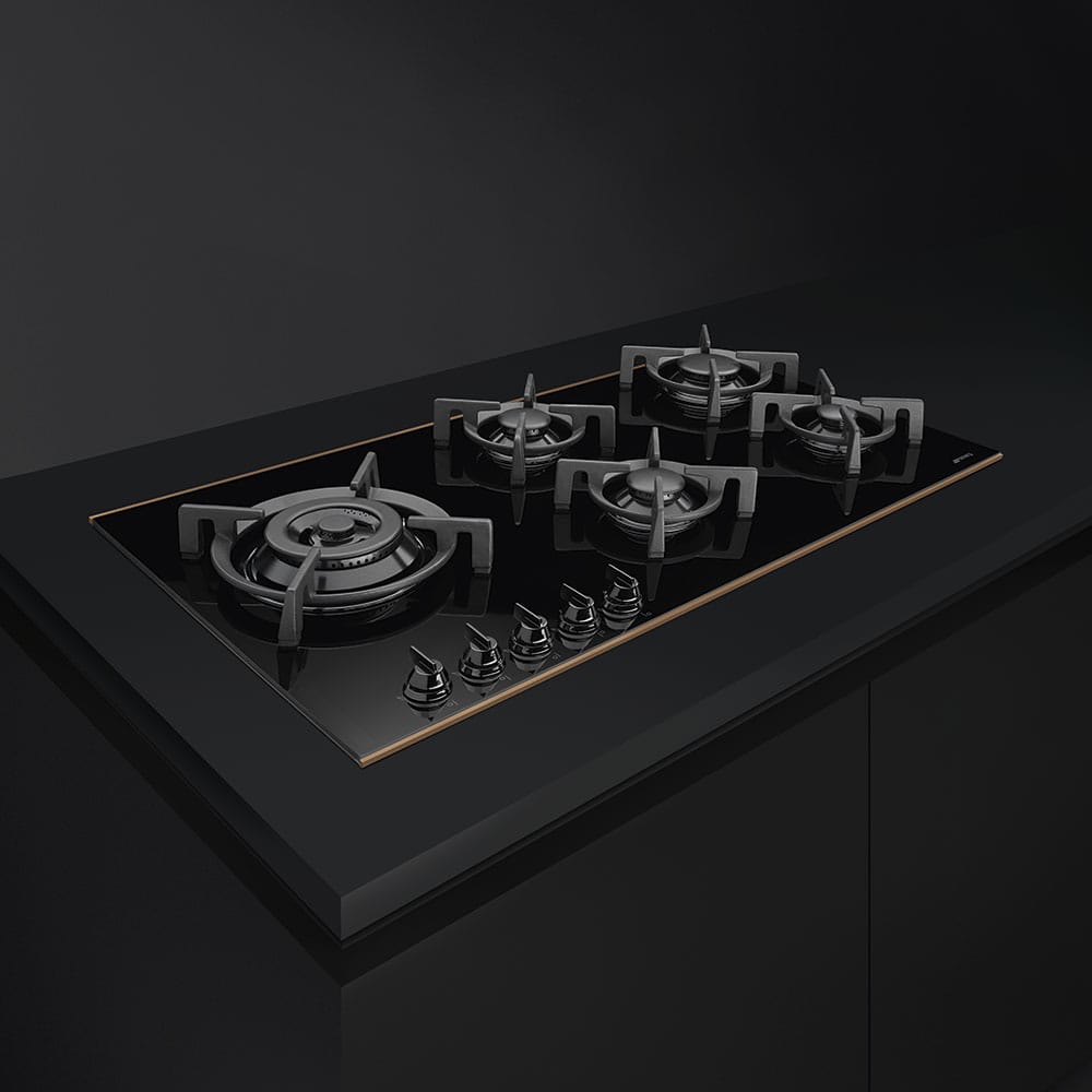 The Smeg PV695LCNR 90cm Gas Hob combines elegant design with powerful cooking performance, making it a sophisticated addition to any kitchen. Finished in sleek black glass with the refined aesthetic of the Dolce Stil Novo range, this hob is designed to complement modern interiors while delivering reliable and efficient results.